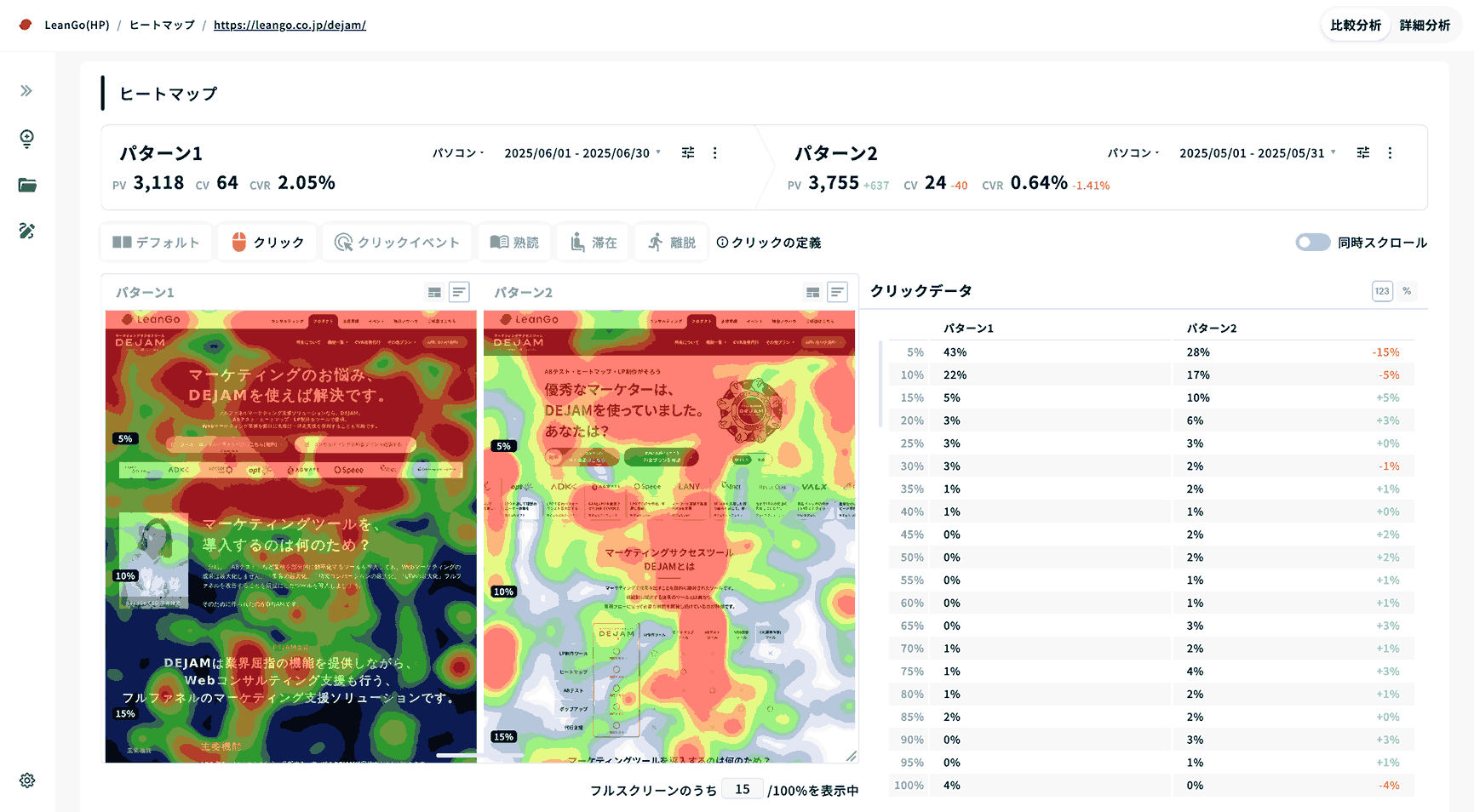 ※守秘義務のためヒートマップ分析機能はLeanGoの用意したサンプルです