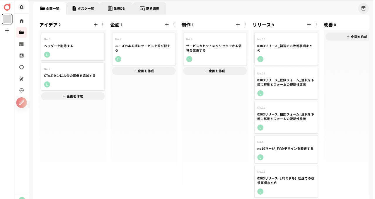 超高速でPDCAを回していく上で、DEJAMのヒートマップ分析機能での課題の発見し、DEJAMのプロジェクト管理機能で改善案を整理しました。