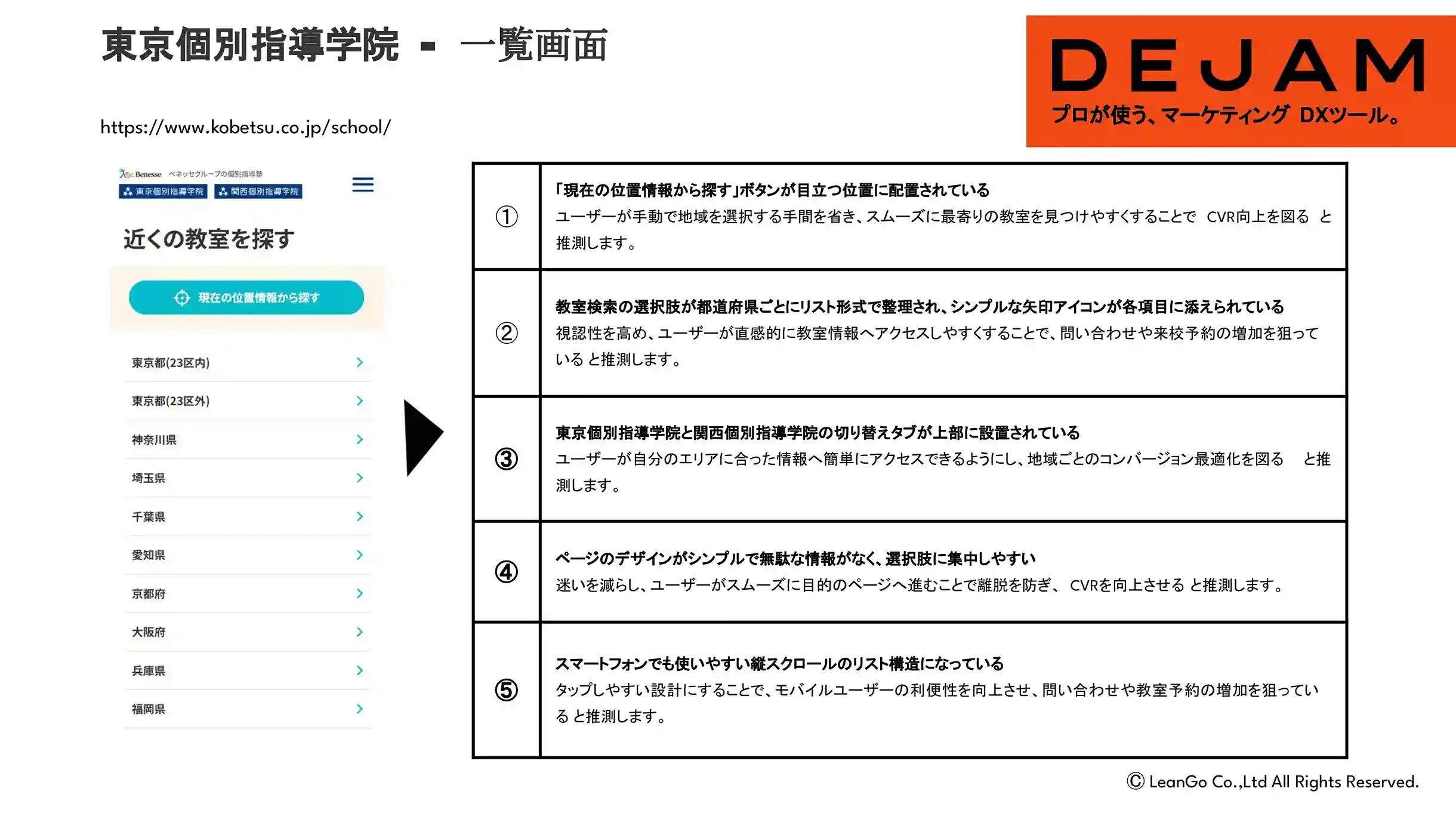 東京個別指導学院一覧画面のCVR改善案