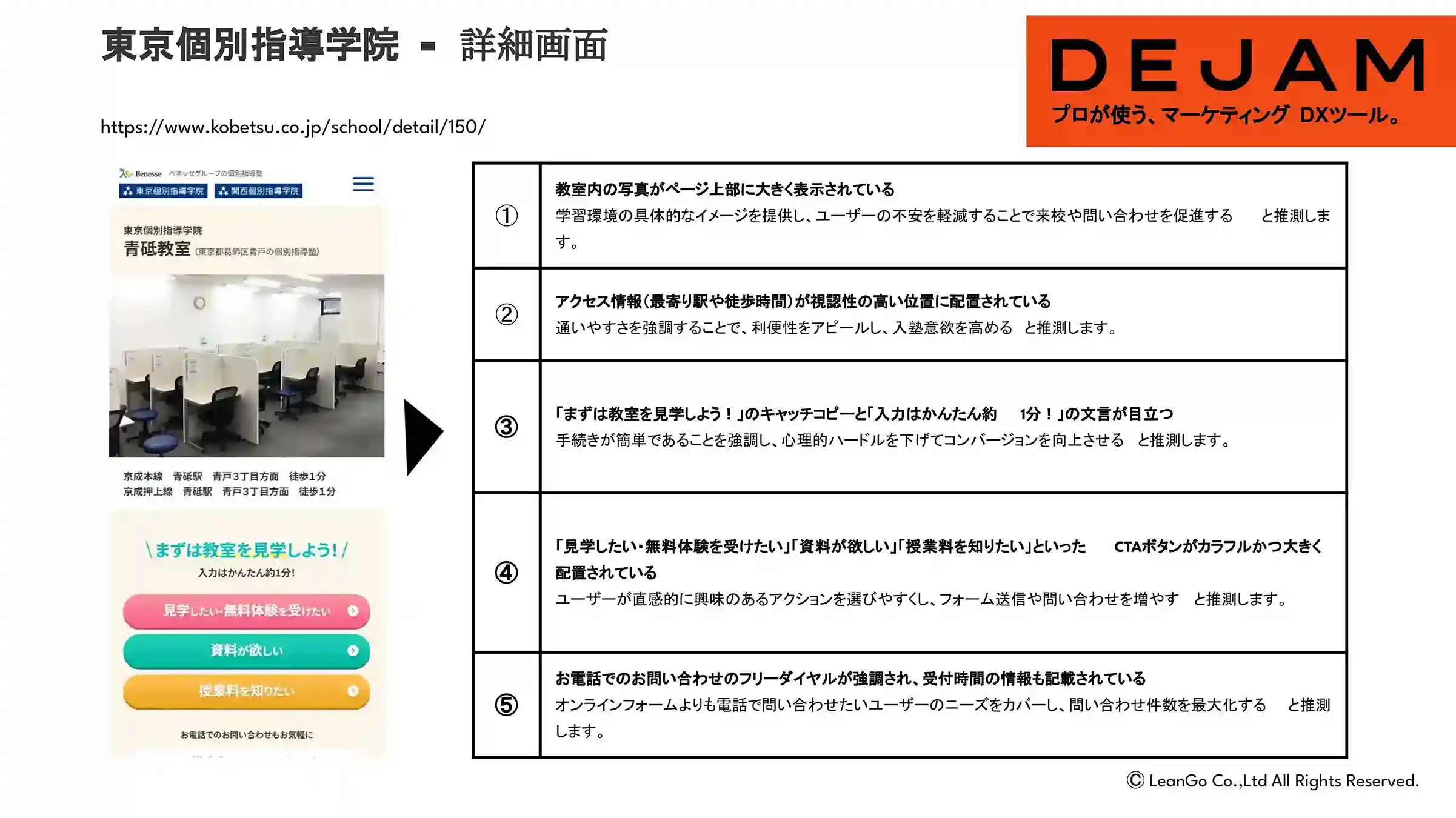 東京個別指導学院詳細画面のCVR改善案