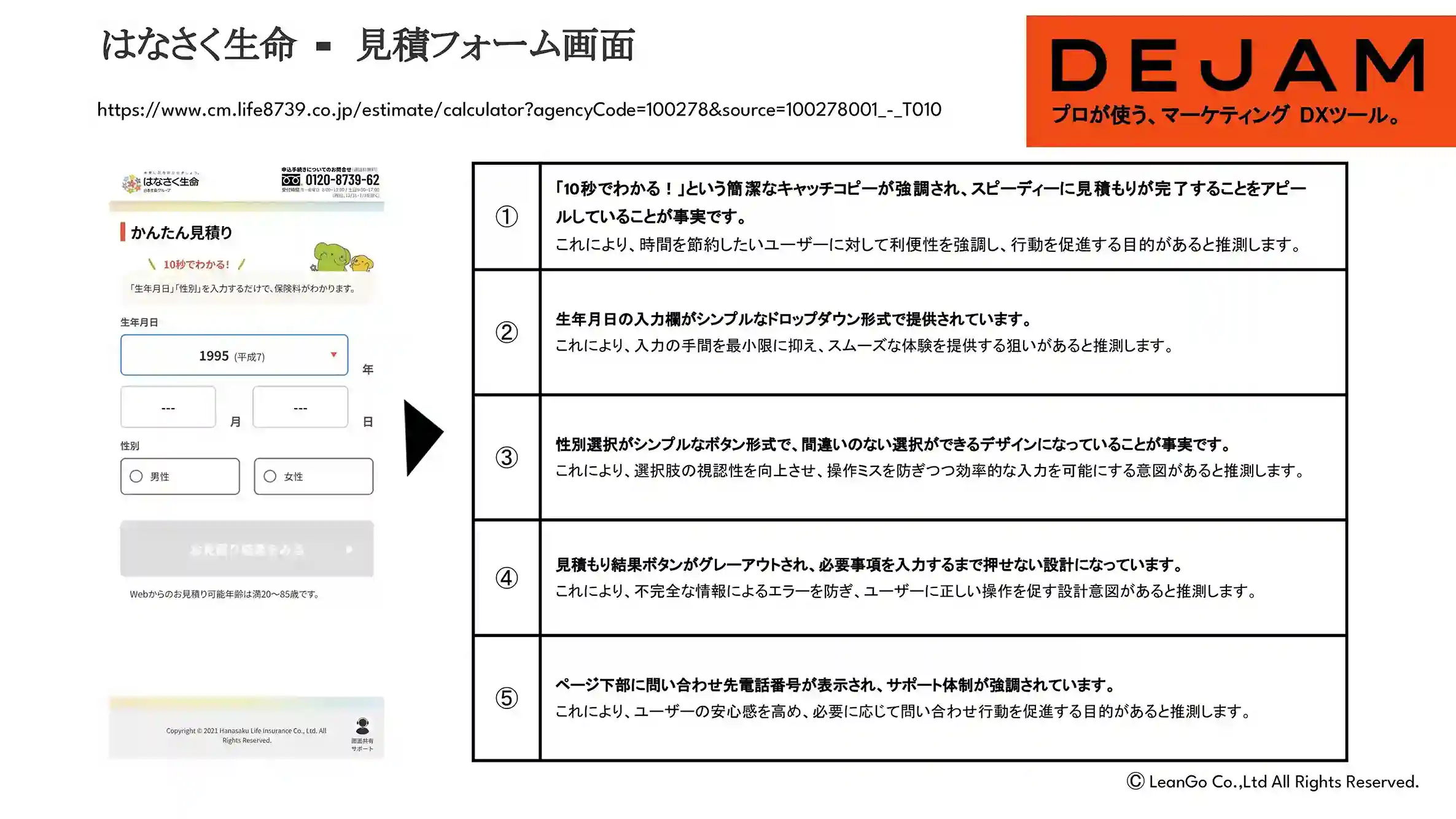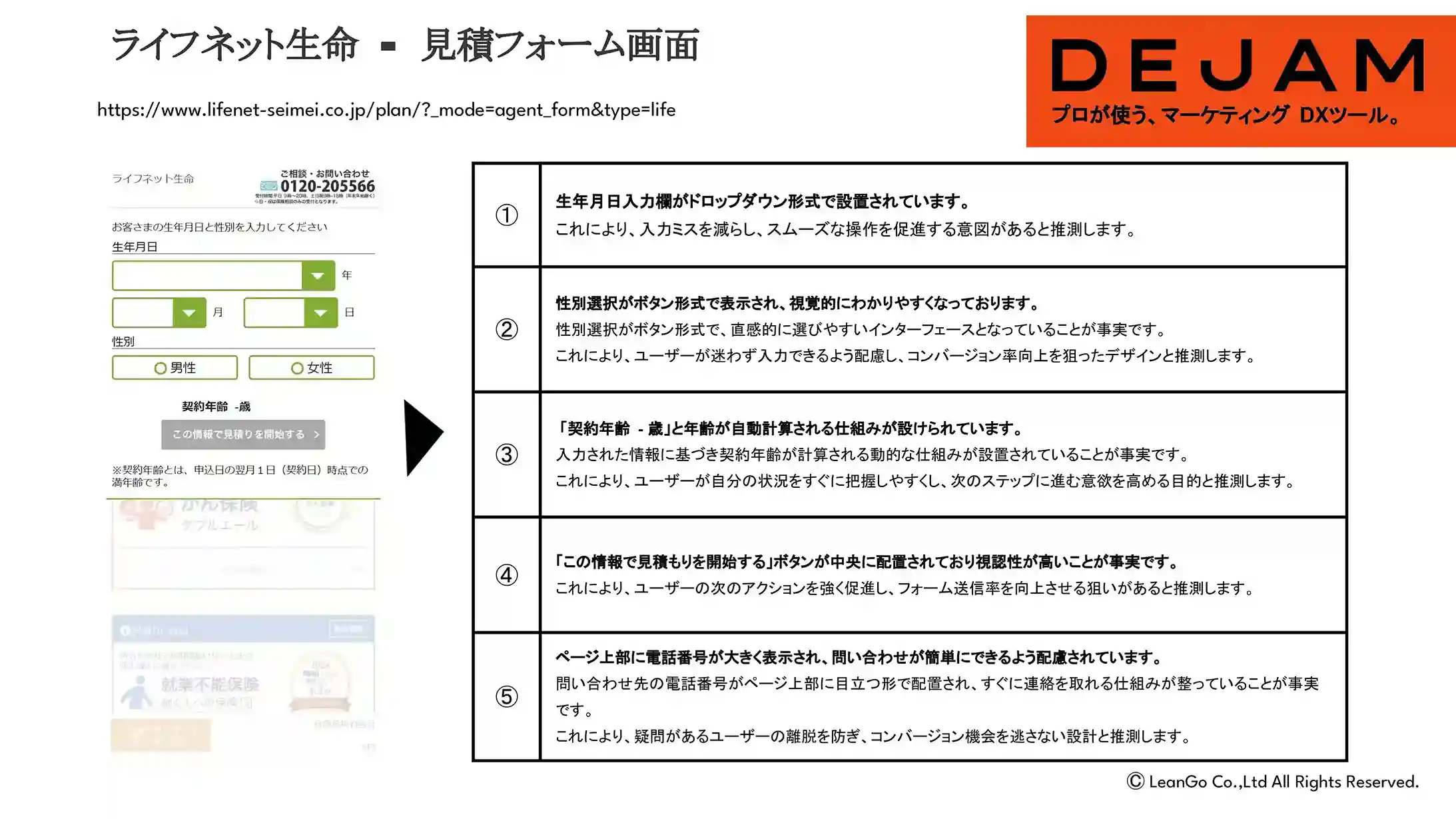 ライフネット生命保険会社見積フォーム画面のCVR改善案