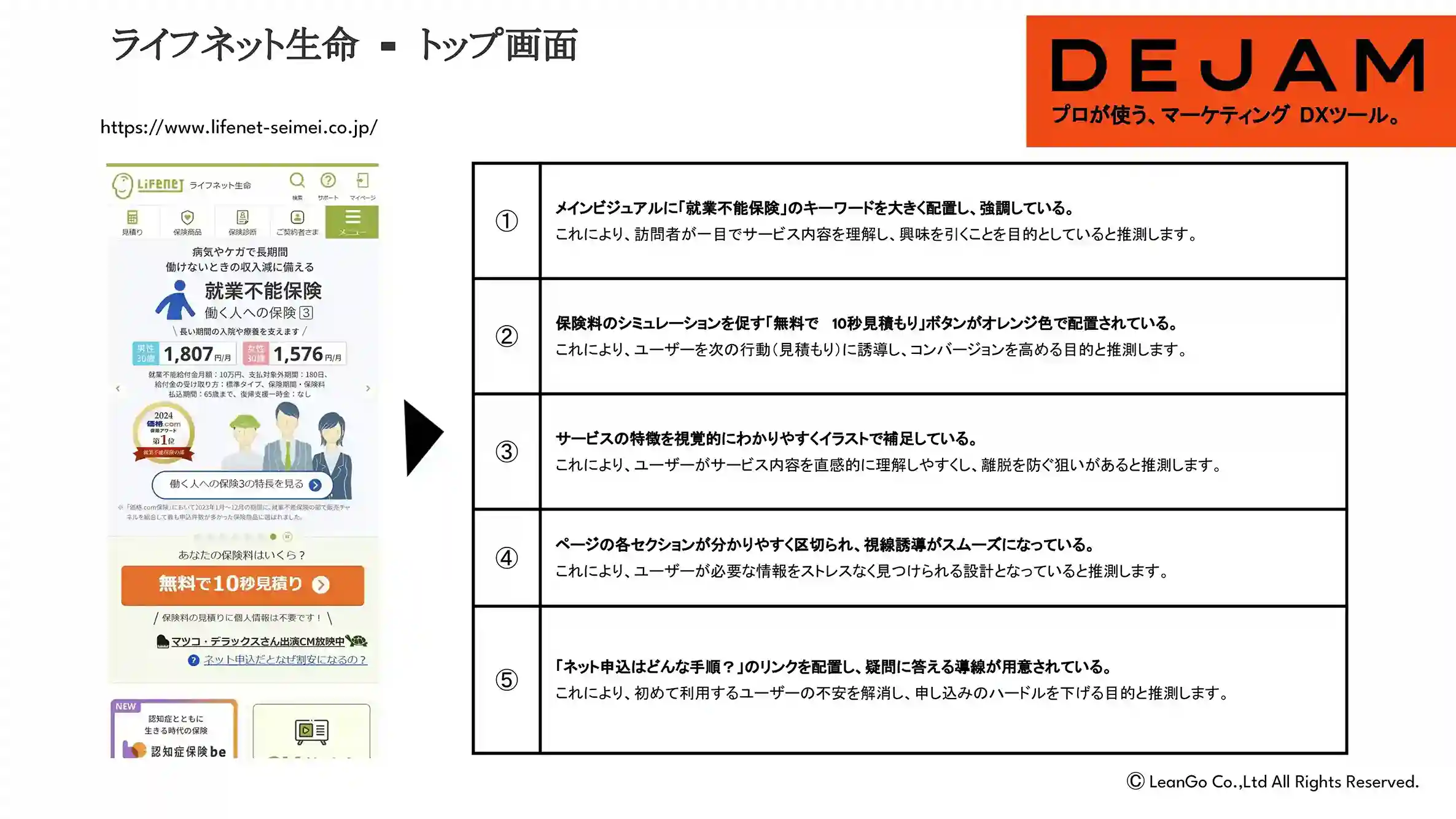 ライフネット生命保険会社トップ画面のCVR改善案