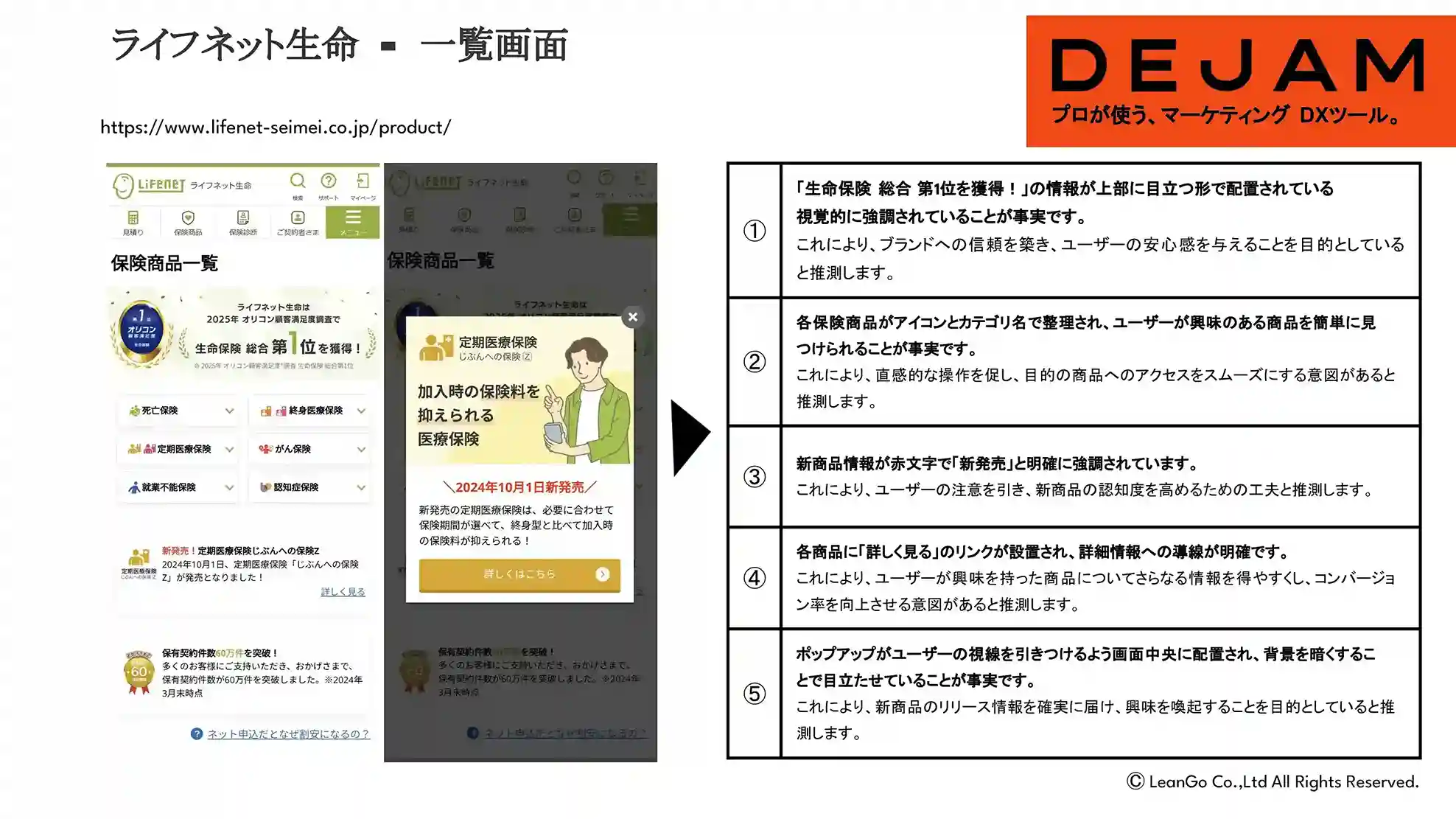 - 「生命保険 総合 第1位を獲得!」の情報が上部に目立つ形で配置されていて視覚的に強調されていることが事実です。