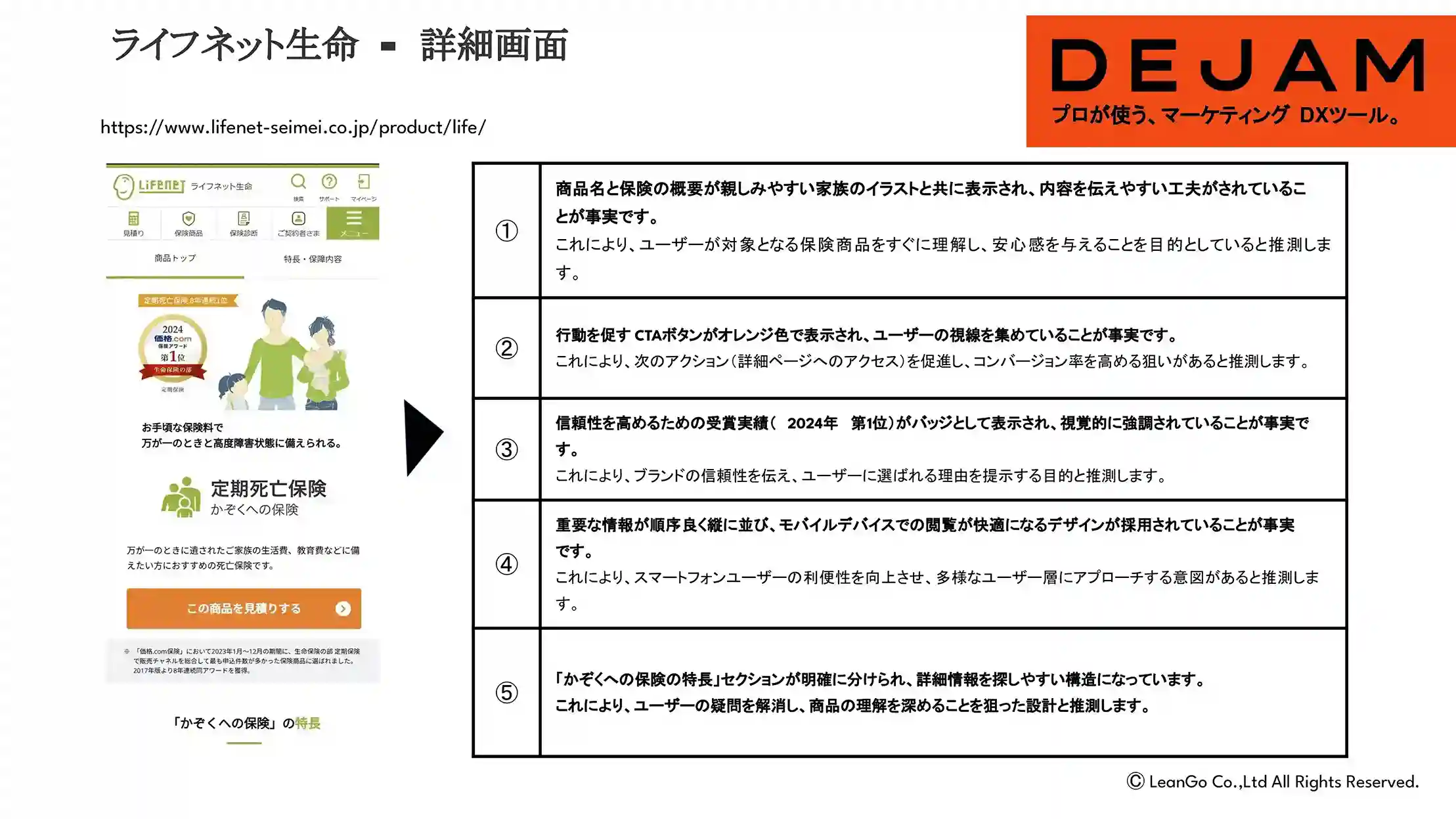 ライフネット生命保険会社詳細画面のCVR改善案