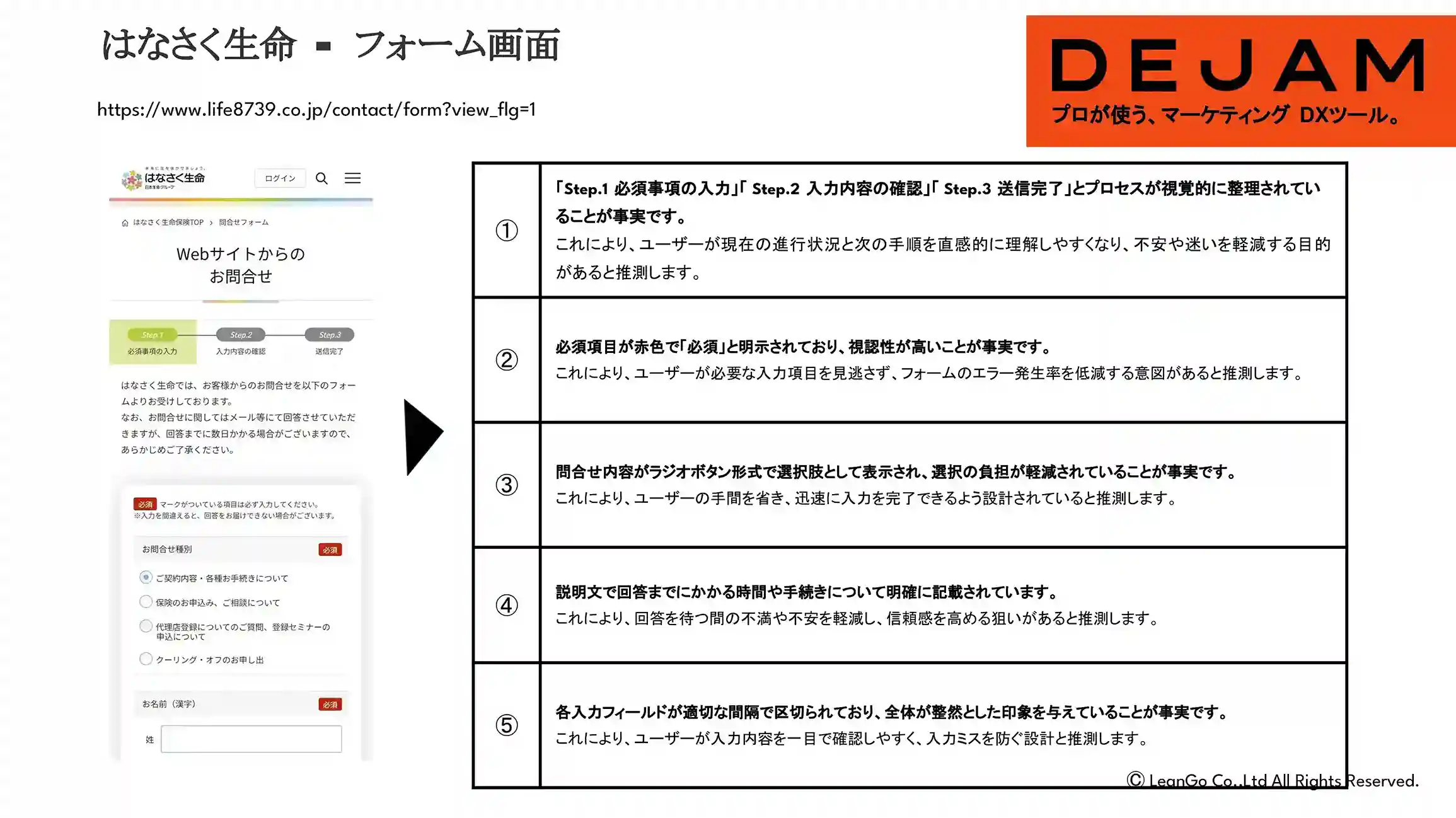 はなさく生命フォーム画面のCVR改善案
