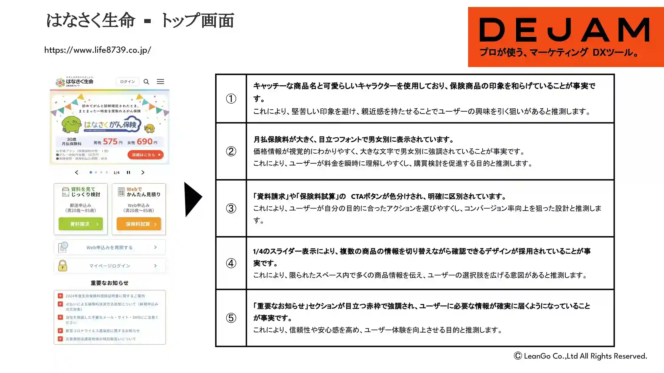 はなさく生命トップ画面のCVR改善案