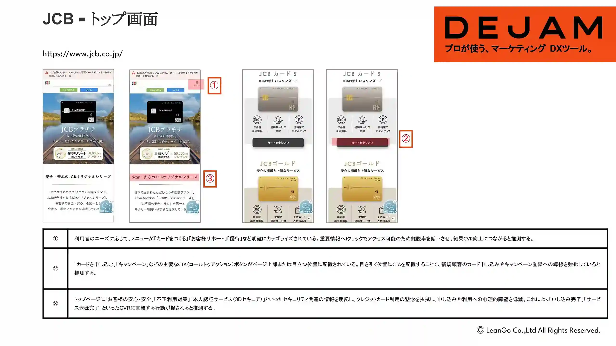 JCBカードトップ画面のCVR改善案