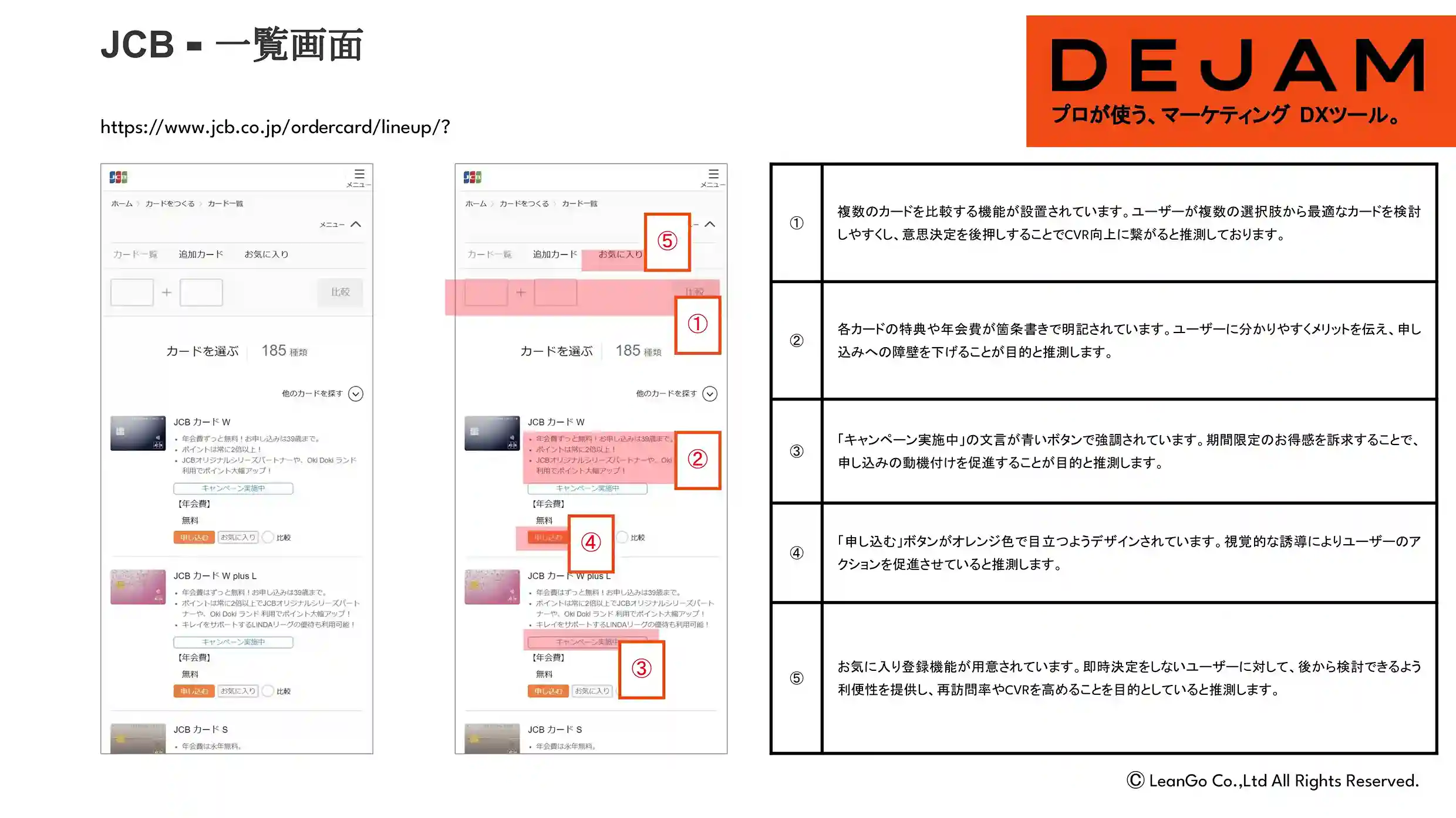 JCBカード詳細画面のCVR改善案