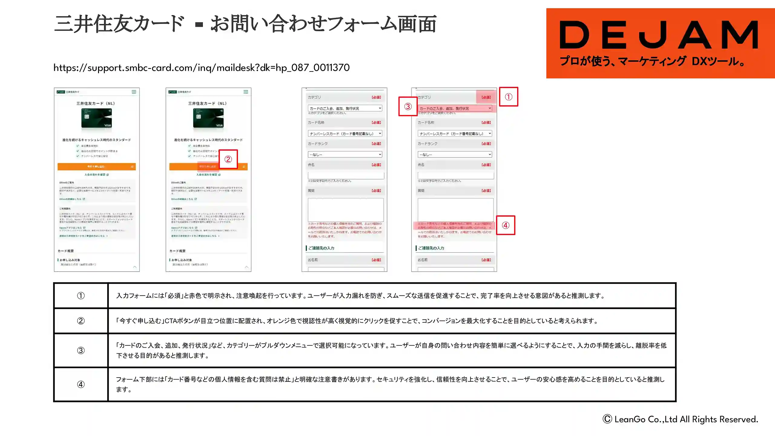 三井住友カードお問い合わせフォーム画面のCVR改善案