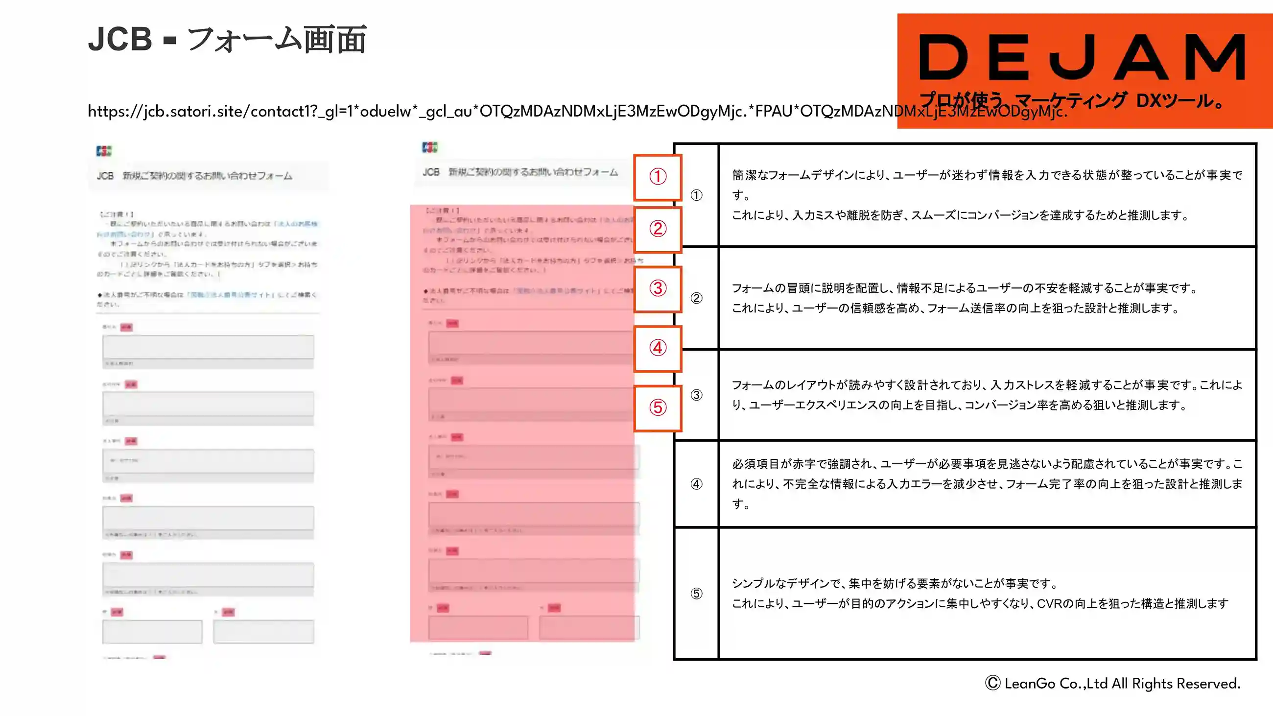 JCBカードフォーム画面のCVR改善案