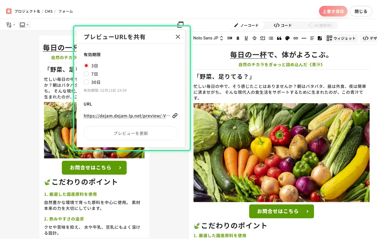 プレビューURLごとに期限(例:3日・7日・30日)を設定可能