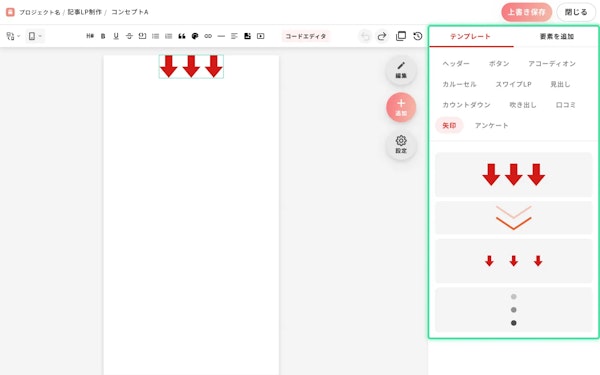 視線誘導を直感的に表現。重要ポイントを強調できる矢印パーツをCMSに搭載